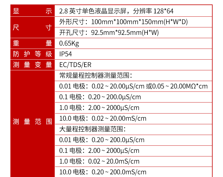 MIK-TDS210B型工業電導率(TDS)儀表,可對各種工業用水的電導率(TDS)值進行連續測量和控制,本裝置廣泛應用于科學實驗裝備、化工、制藥、環保、冶金、造紙、食品、飲料及供水等行業。