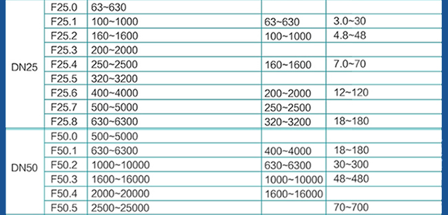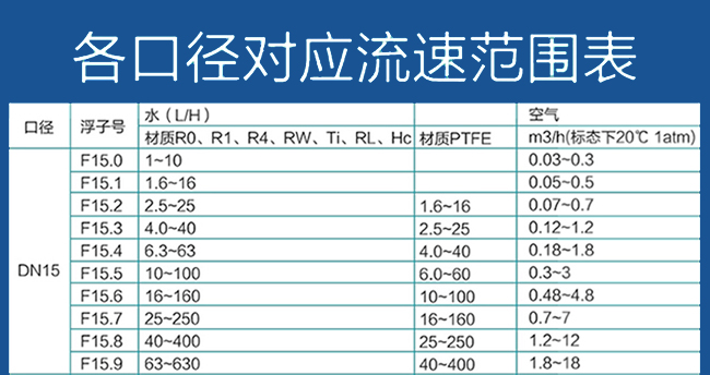 測量范圍:(100%點值)從流量表選擇