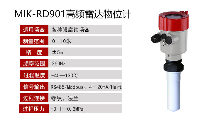 19857007412MIK-RD901雷達物位計天線發(fā)射極窄的微波脈沖,這個脈沖以光速在空間傳播,遇到被測介質(zhì)表面,其部分能量被反射回來,被同一天線接收。發(fā)射脈神與接收脈沖的時間間隔與天線到被測介質(zhì)表面的距離成正比。由于電磁波的傳播速度極高,發(fā)射脈神與接收脈神的時間間隔很小(納秒量級)很難確認,MIK—RD901高頻雷達物位計采用種特殊的解調(diào)技術(shù),可以準確識別發(fā)射脈神與接收脈神的時間間隔,從而進一步計算出天線到被測質(zhì)表面的距離。