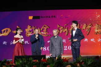 △在晚間進行的“四十載途,浙科夢想”晚會上,科院學子和離退休老師們重現了當時的創校情景。