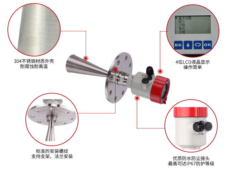 7、安裝方式有多種可以選擇:頂部安裝、側面安裝、旁通管安裝、導波管安裝;