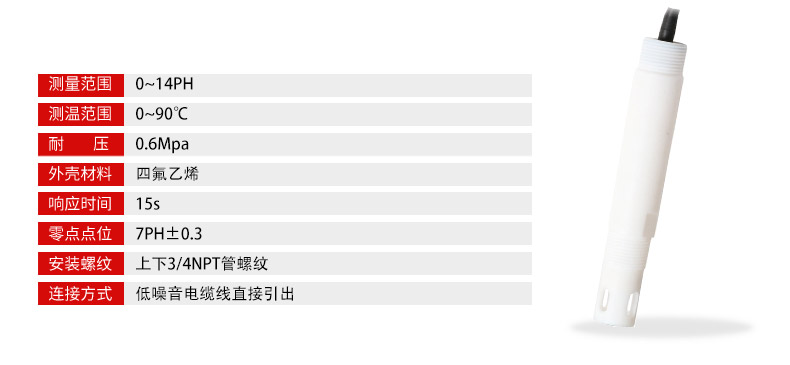 MIK-PH-5013A工業在線聚四氟電極采用聚四氟乙烯材質外殼,抗強酸強堿,耐腐蝕,適合惡劣環境使用。可根據客戶需要加裝各種溫補型號PT100/PT1000/NTC 10K等。廣泛應用于醫藥、顏料、涂料、紙漿造紙、中間體、化肥、淀粉、污水處理、環保、電鍍廢水處理等行業。