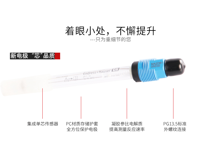 CSP31-1AC2GSA電極源于德國(guó)E+H,參比端無(wú)銀離子,防止銀化物沉淀所導(dǎo)致的測(cè)試問(wèn)題;凝膠參比電解質(zhì)設(shè)計(jì),確保測(cè)量持續(xù)穩(wěn)定,不受外界因素干擾,延展性PTFE環(huán)型隔膜防護(hù)設(shè)計(jì),適用于更多復(fù)雜工況,防止測(cè)量介質(zhì)沉積阻塞,保證長(zhǎng)期的穩(wěn)定性和準(zhǔn)確性。