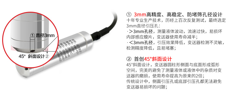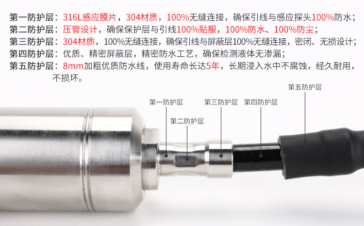 測量范圍:0~1m;0~2m;0~3m;0~4m;0~10m;特殊規格可定制,最大200m水深
