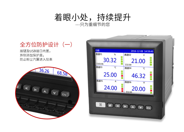 19857007412? ?RX6000D系列彩屏無紙記錄儀采用高速、高性能32位ARM處理器和5.6英寸LED背光的320*240點陣式液晶顯示屏,適用于現場各種壓力,溫度,流量等信號的檢測,控制和記錄。