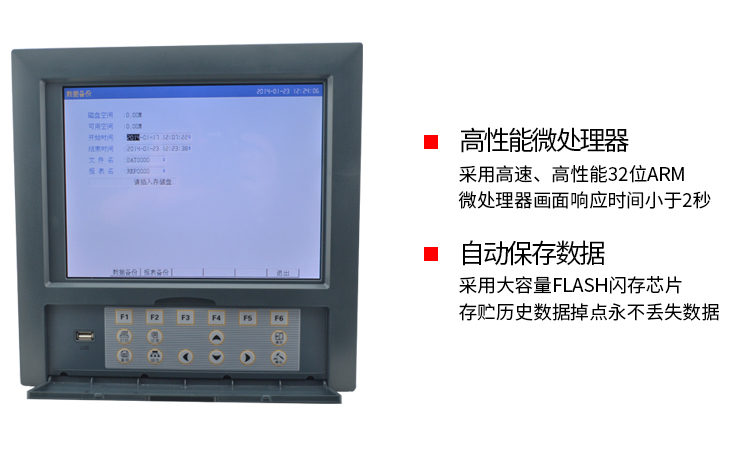 RX8000D彩屏無紙記錄儀集顯示、處理、記錄、積算、報警和配電等多種功能于一身;采用10.4英寸640x480TFT真彩液晶顯示屏。配以中文顯示界面。畫面大而且清晰;按鈕和旋鈕聯用使操作更靈活簡便,符合工業人員的操作習慣;內部采用大容量的NANA FLASH作為內部儲存介質,真正實現無紙記錄儀強大的記錄功能,同時采用CF卡作為外部儲存介質,可將需要保存的數據通過CF卡轉存至計算機或其他設備中保存或打印。