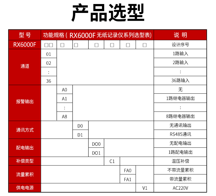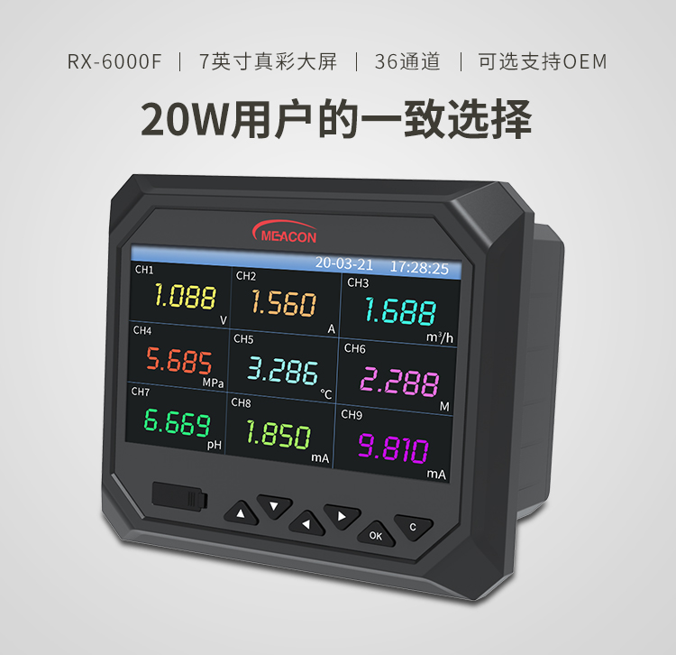 RX-6000F系列無紙記錄儀集各種工業場合中數據的測量、顯示、處理、運算、報警、記錄等多種功能為一體,具有36路模擬量信號輸入通道,8路繼電器報警輸出,150mA配電輸出(可接6路兩線制變送器,或者2路四線制變器),2路RS-485通訊接口,并擁有1個USB數據轉存接口。