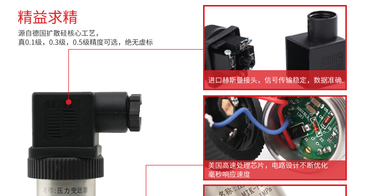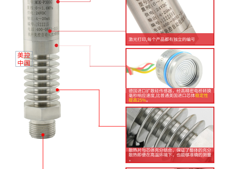 19857007412MIK-P300G耐高溫壓力變送器壓力敏感核心采用了高性能的硅壓阻式壓力充油芯體,內部的專用集成電路將傳感器毫伏信號轉換成標準電壓、電流或頻率信號,可以直接與計算機接口卡、控制儀表、智能儀表或PLC等方便相連。運距離傳輸可以采用電流輸出方式。具有體積小、重量輕、全不銹鋼密封結構,可在腐蝕性環境中工作。該產品安裝方便簡潔,具有非常好的抗振和抗沖擊性能,廣泛應用于過程控制、航空、航天、汽車、醫療設備、 HVAC等領域。
