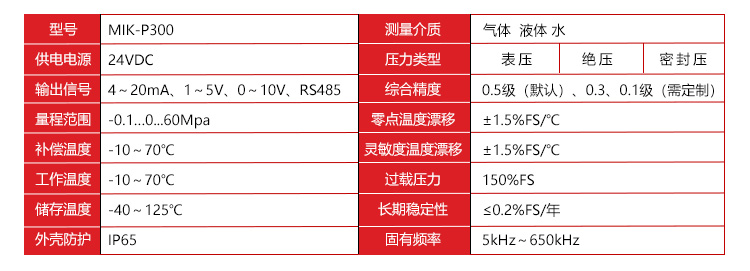 MIK-P300系列液位壓力變送器壓力敏感核心采用了高性能的硅壓阻式壓力充油芯體,內部的專用集成電路將傳感器毫伏信號轉換成標準電壓、電流或數字信號,可以直接與計算機接口卡、控制儀表、智能儀表或PLC等方便相連。遠距離傳輸可以采用電流或者485通訊輸出方式。具有體積小、重量輕、全不銹鋼密封結構。該產品安裝方便簡潔,具有非常好的抗振和抗沖擊性能,廣泛應用于過程控制、航空、航天、汽車、醫療設備、HVAC等行業的液體、氣體的測量與控制。
